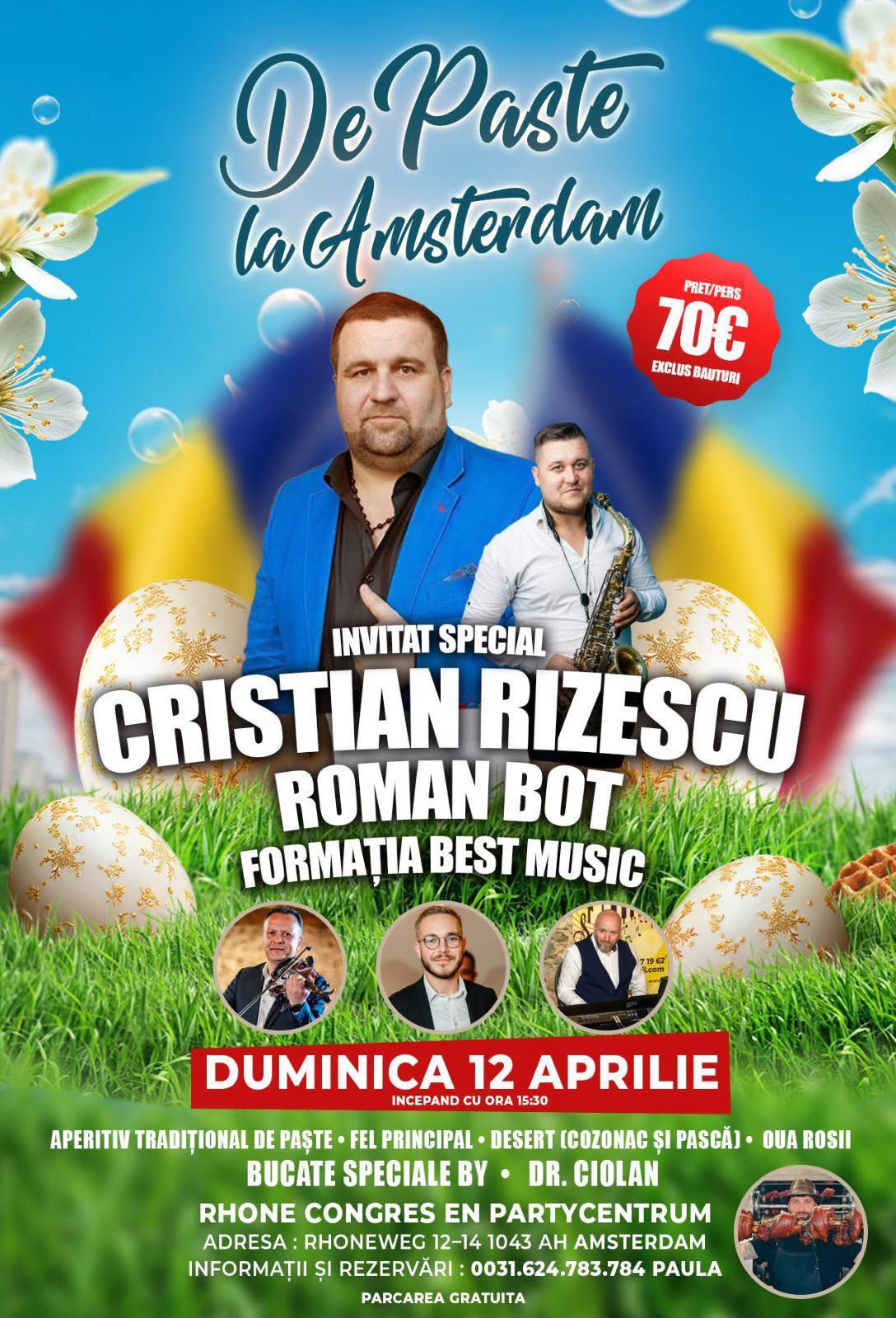 Paște românesc la Amsterdam pe 12 aprilie: petrecere cu Cristian Rizescu, Roman Bot și Formatia Best Music